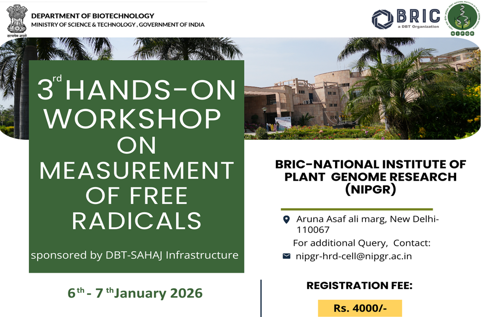 News“3rd Hands-on workshop on measurement of free radicals” under DBT-SAHAJ platform for measurement of free radicals (PMFR) NIPGR / December 7, 2025 January 6 – 7, 2026