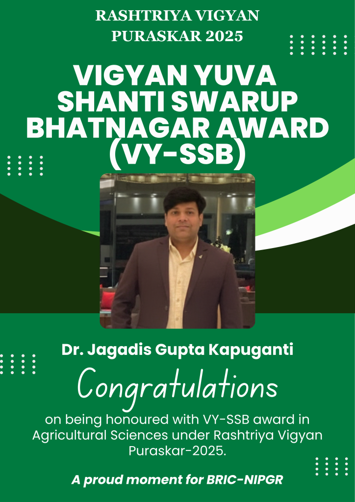 Dr. Jagadis Gupta Kapuganti received VIGYAN YUVA SHANTI SWARUP BHATNAGAR AWARD (VY-SSB) in Agricultural Sciences under Rashtriya Vigyan Puraskar-2025