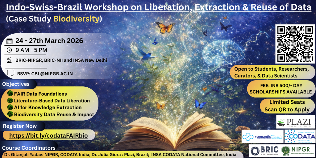 This event is being conducted in collaboration with Switzerland based PLAZI and CODATA National Cte at INSA. It will introduce participants to practical methods for extracting knowledge from scientific literature, structuring it as FAIR data, and enabling its reuse using modern approaches like AI and NLP. Students and researchers at NIPGR are especially encouraged to apply, as these skills are becoming increasingly important for open science and AI-driven research workflows.