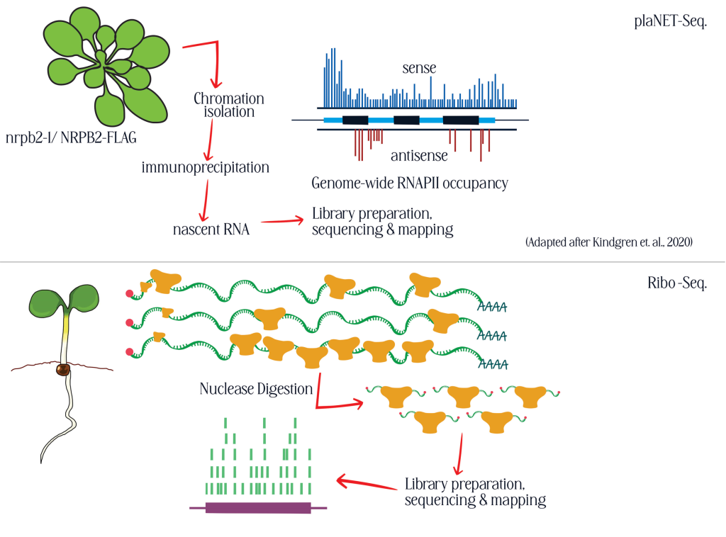 - Investigation into the local and global transcriptional dynamics of widespread sense-antisense transcription, and the regulatory processes that govern optimal non-coding and coding transcriptional output during developmental and stress responses in plants.
